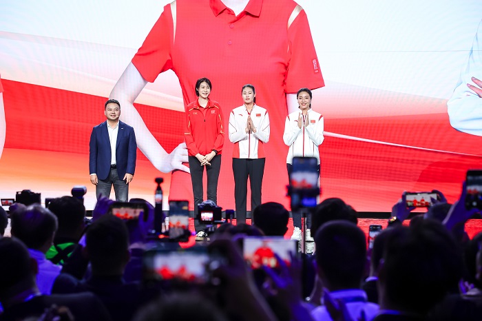 【女排世界冠军赵蕊蕊、魏秋月、颜妮亮相发布会现场】