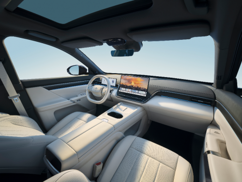 此外,eπ008对舒适的追求近乎偏执。全车升级云感亲肌超软面料,50W仿麂皮无线充、电释放门把手等细节尽显匠心。二排三排隐私玻璃+双层隔音玻璃+遮阳帘的组合,配合出色的NVH工程(中汽研静谧之心认证)和经冠军团队调校的底盘(中汽中心动态驾乘舒适性测试高分),共同构筑了超越同级的极致静谧与平稳驾乘体验。