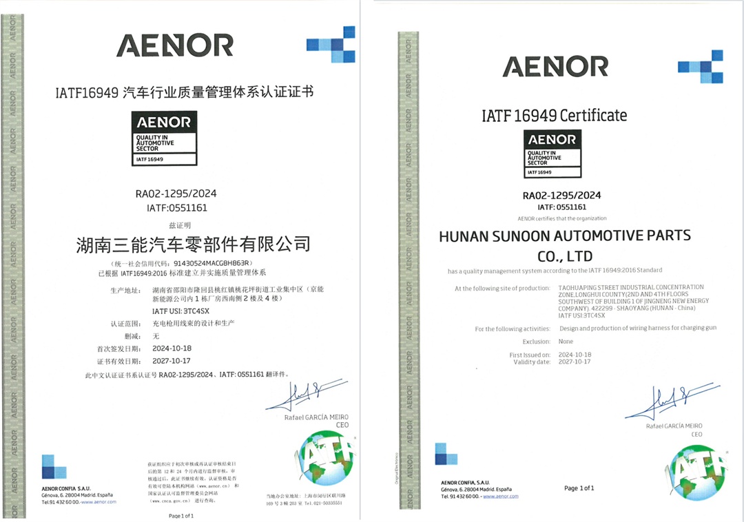 在波澜壮阔的汽车工业发展浪潮中,每一个零部件的精度与可靠性,都直接关乎着整车的安全、性能与用户体验。作为汽车的“神经网络”,高低压线束系统的重要性不言而喻。湖南三能汽车零部件有限公司(以下简称“三能线束”)在2024年就已经成功通过了国际公认的严苛标准——IATF 16949:2016质量管理体系认证。这张被业界称为“汽车质量护照”的认证,不仅标志着三能线束在设计、生产、交付全流程上与全球汽车行业最高标准全面接轨,更预示着公司必将开启一段以“零缺陷”为目标、以“智能制造”为抓手的质量新征程。