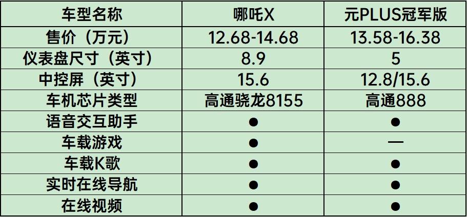 而在软件功能上,其实两款车型的条件相近,哪吒X多了「融合自动泊车」、「一键遥控泊车」、「循迹倒车」等功能。不过考虑到这个版本的哪吒X要比元PLUS冠军版便宜了13000元,前者更有性价比。