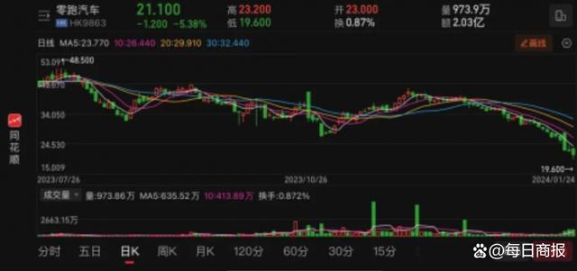 1月24日,零跑汽车(下称“零跑”)股价下跌5.38%,报收21.1港元。