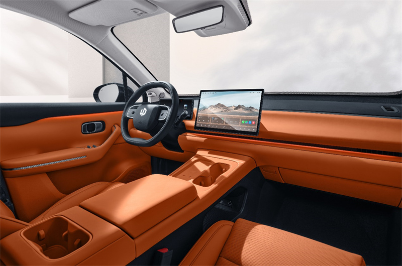 内饰空间方面,零跑C10 内饰风格方面带来全新突破的设计,在柔和曲面与现代设计融合的基础上,大量采用平直线条与圆角矩形设计,更加强调具有张力的秩序感。配合4739mm车长,2825mm轴距,使零跑C10拥有同级领先的1050mm后排腿部最大空间,1015mm最大头部空间,同时第二排坐垫长度达到514mm,使得整个座舱空间精致、宽敞、舒享。同时在空间布局上,零跑C10提供到同级难得一见的多变灵活设计:前排座椅头枕可插拔,靠背最大可180°放平,前排座椅放倒后与后排座椅连接,可形成纯“躺平”大空间。此外内饰配色上,零跑C10提供了赤霞橙、星垣紫两种颜色可选,凸显活力热情与尊贵质感。