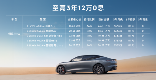 在活动期间成功预订领克Z10车型的客户,将有机会享受长达3年的0息贷款以及价值65,000元的购车优惠。包括:全系车型免费升级至价值10,000元的哈曼卡顿“23扬声器豪华音响包”,并可免费选择价值2,000元的拼色车身;除领克Z10 Pro车型外,全系车型还可免费升级至价值8,000元的豪华座舱套装;预订Max或Halo版车型的客户,将额外享受价值5,000元的主动升降隐藏式尾翼。