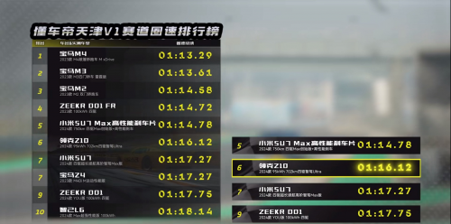 不仅加速要快,还要刹得住。领克Z10百公里刹停距离仅为34.31米,表现出色,并且可连续10次制动无热衰减,在懂车帝天津V1赛道圈速排行榜中,以1分16秒12的成绩刷新20万级原厂车圈速纪录,以极致性能印证“789匹领克王”!