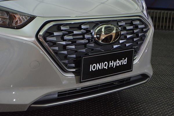 中期改款Ioniq Hybrid仍维持原来类似轿跑车的Fastback斜背式造型,拥有相同的Cd值0.24低风阻,在造型上,主要变动在于车头换上全新的复眼式LED车灯组,结合双刀式LED日行灯,水箱护罩水箱护罩也采用现代最新的六角型水箱护罩,水箱护罩还拥有自动启闭的功能,另有全新的菱格纹造型气坝,而车侧升级风阻更低的17吋扇形铝圈,车尾则是更全新设计的箭矢型LED尾灯,提升辨识度。